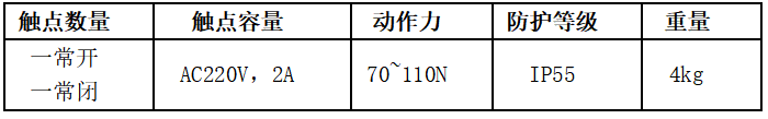 本開關(guān)輸出一常開一常閉信號,用戶可將該信號引入控制回路中。